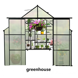 Invernadero de policarbonato moderno para todas las estaciones Base elevada negra Aluminio fácilmente Patio trasero
